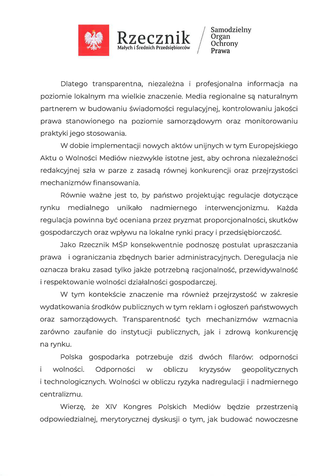 Głównym punktem refleksji kongresowych była kondycja mediów regionalnych. Jak podkreślali prelegenci, mimo globalizacji i migracji, człowieka najbardziej interesuje to, co dzieje się na jego własnym „podwórku”. Chcemy wiedzieć o sprawach lokalnych szybko i prawdziwie. To właśnie media lokalne stanowią krwioobieg społeczny – są barierą dla korupcji, mechanizmem kontrolnym władzy i przestrzenią budowania tożsamości obywatelskiej.